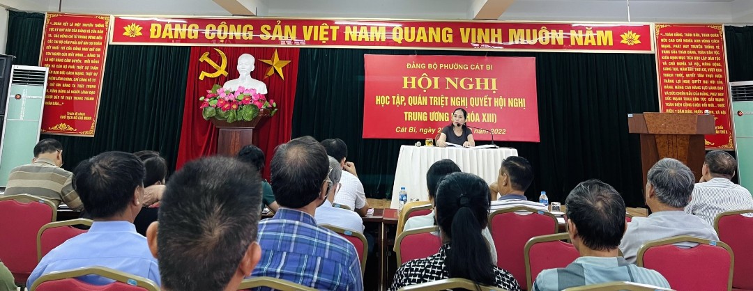 Thực hiện Kế hoạch số 95-KH/QU ngày 19/7/2022 của Ban Thường vụ Quận uỷ Hải An, ngày 25/08/2022, tại Hội trường Đảng uỷ HĐND – UBND phường Cát Bi, Đảng uỷ phường Cát Bi tổ chức Hội nghị học tập, quán triệt, tuyên truyền Nghị quyết Trung ương 5 Ban Chấp hành Trung ương Đảng khoá XIII.