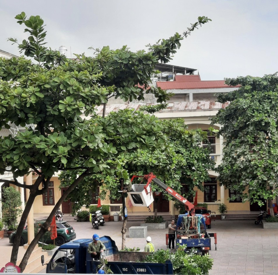 Bước vào mùa mưa bão, thời tiết diễn biến bất thường, để đảm bảo an toàn cho học sinh, cán bộ giáo viên, nhân viên, nhà trường đã tăng cường kiểm tra, rà soát toàn bộ cơ sở vật chất, hệ thống cây xanh, đường điện và các nguy cơ mất an toàn trong trường học để có biện pháp xử lý kịp thời. Chiều ngày 29/8/2023, nhà trường phối hợp cùng Công ty Cổ phần công viên, cây xanh Hải Phòng đã tiến hành cắt tỉa cây xanh trong khuôn viên trường.