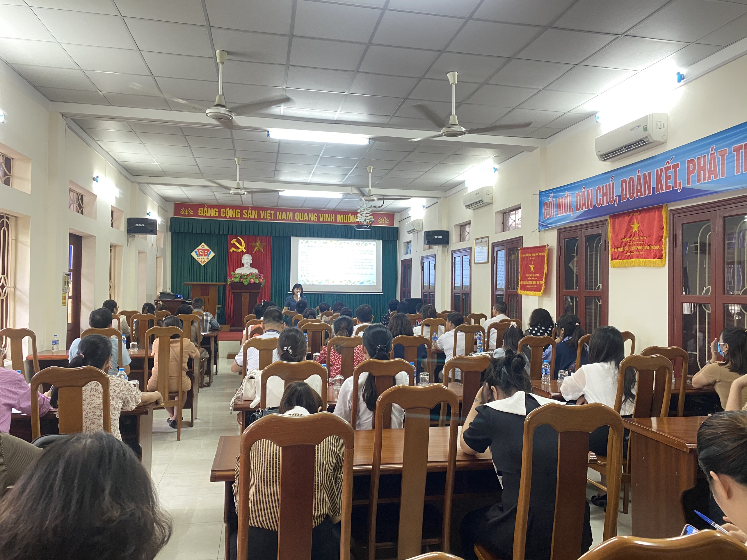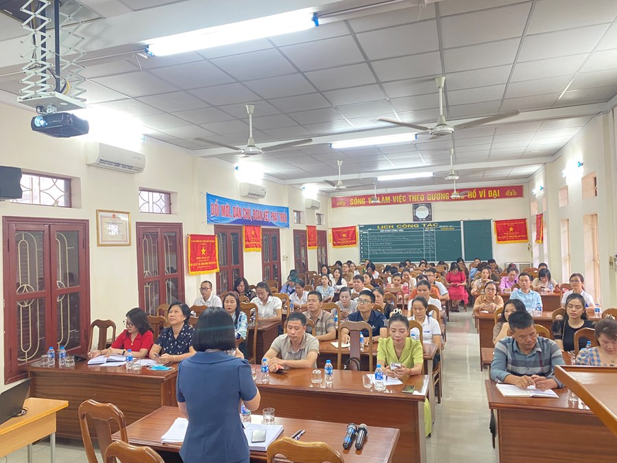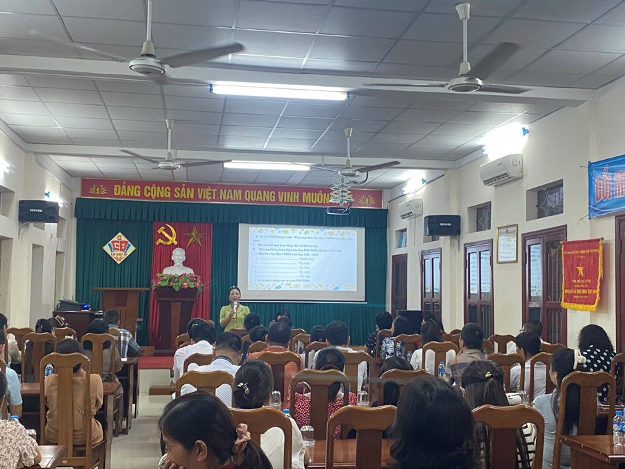 Tại hội nghị, cô giáo Nguyễn Thị Phương - Hiệu trưởng nhà trường đã triển khai được các nhiệm vụ chính trong năm học 2023 - 2024; Thông qua các Nghị quyết Nghị quyết số 02/2022/NQ-HĐND ngày 20/7/2022 của Hội đồng nhân dân thành phố quy định danh mục các khoản thu và mức thu, cơ chế quản lý thu, chi đối với các dịch vụ hỗ trợ hoạt động giáo dục, đào tạo đối với cơ sở giáo dục công lập trên địa bàn thành phố Hải Phòng; Kế hoạch số 215/KH-UBND về việc thực hiện Nghị quyết số 02/2022/NQ-HĐND ngày 20/7/2022 của Hội đồng nhân dân thành phố quy định danh mục các khoản thu và mức thu, cơ chế quản lý thu, chi đối với các dịch vụ hỗ trợ hoạt động giáo dục, đào tạo; Công văn số 1089/UBND- TCKH ngày 26/7/2023 của UBND quận về việc hướng dẫn thu, chi tài chính trong các nhà trường năm học 2023-2024; Công văn số 1741/BHXH-QLTST ngày 19/7/2023 của Bảo hiểm Xã hội thành phố Hải Phòng về việc triển khai công tác thu BHYT học sinh sinh viên năm học 2023-2024; Công văn số1847/UBND-BHXH ngày 31/7/2023 của UBND quận Hải An về việc triển khai thực hiện bảo hiểm y tế học sinh, sinh viên năm học 2023-2024.