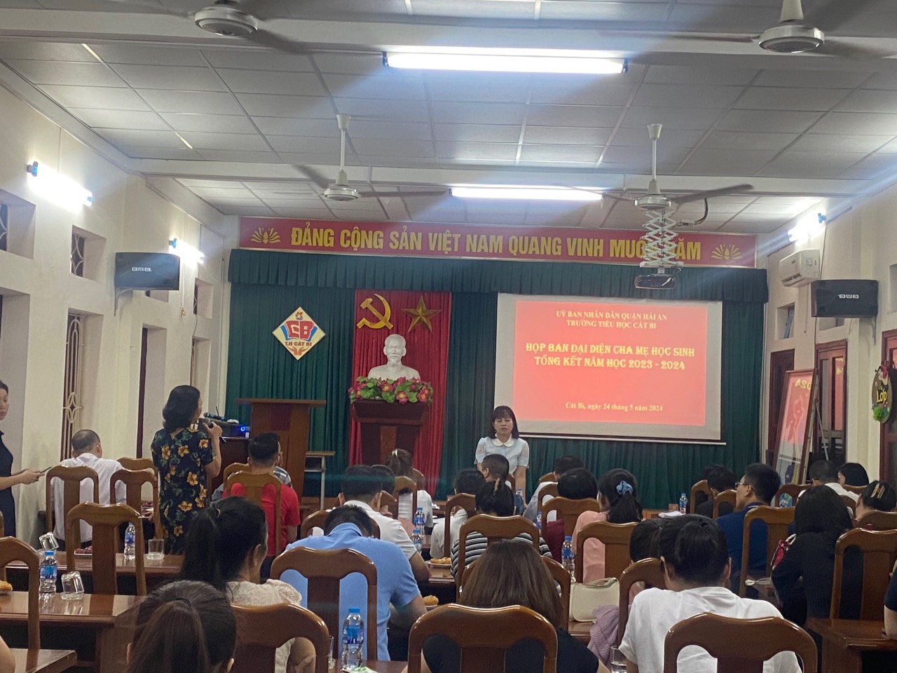 Thực hiện kế hoạch nhiệm vụ năm học 2023-2024 của trường Tiểu học Cát Bi nhằm đánh giá kết quả học tập, rèn luyện và tham gia các hoạt động của học sinh, đánh giá việc thực hiện kế hoạch năm học của nhà trường, chiều ngày 24 tháng 5 năm 2024, Trường Tiểu học Cát Bi đã tổ chức họp Ban đại diện cha mẹ học sinh và ngày 25 tháng 5 năm 2024, 100% các lớp họp phụ huynh cuối năm học 2023-2024. Đây là dịp để nhà trường, giáo viên chủ nhiệm và phụ huynh học sinh cùng nhìn lại những kết quả đã đạt được trong năm học qua và thống nhất những biện pháp phối hợp nhằm giáo dục, giúp đỡ học sinh đạt được những kết quả học tập và rèn luyện tốt hơn trong năm học tiếp theo.