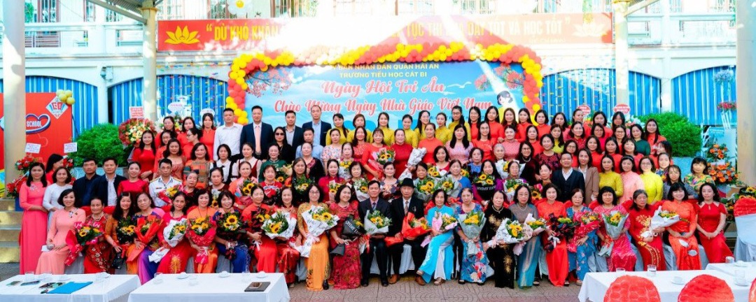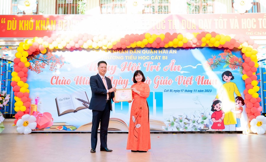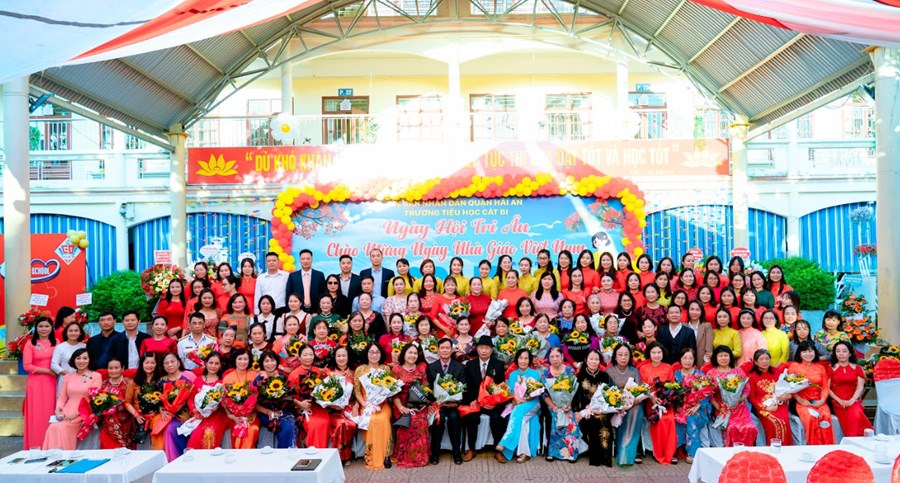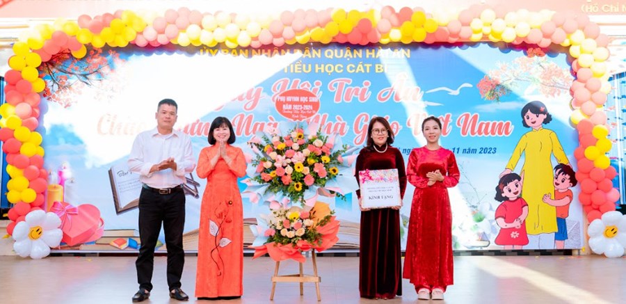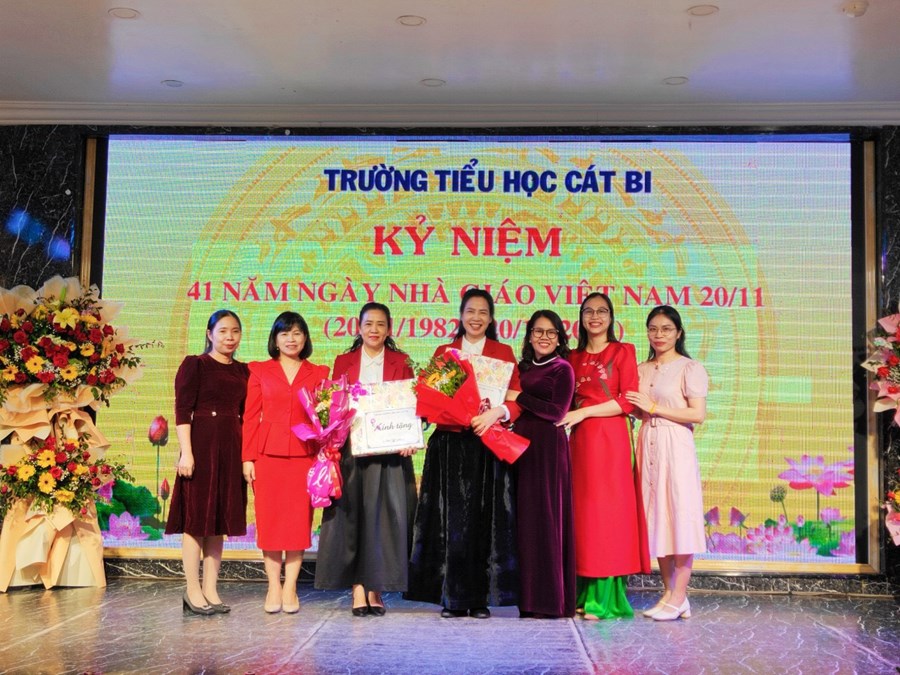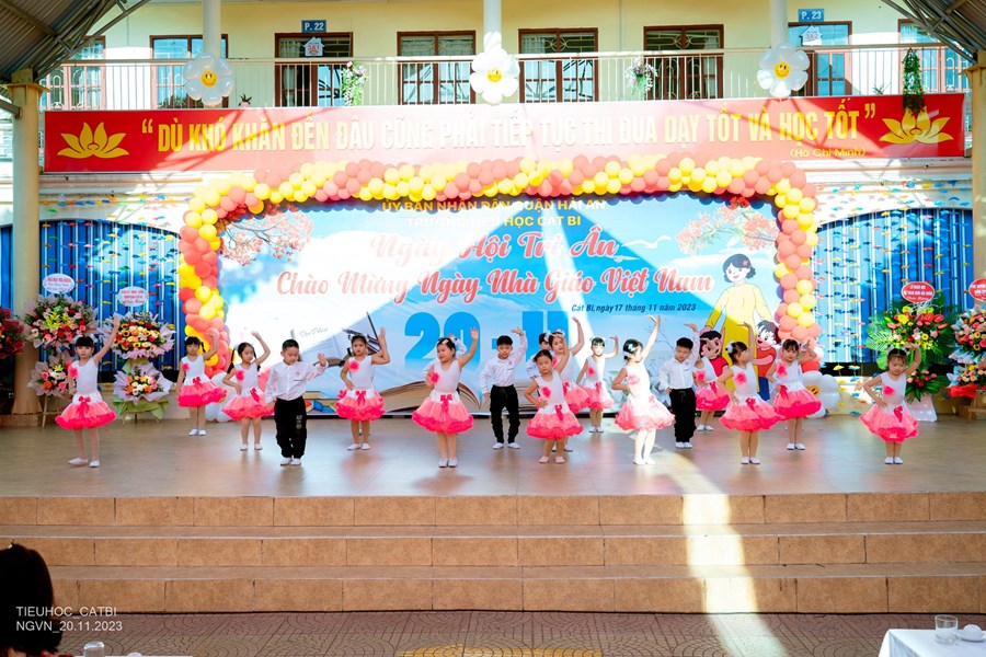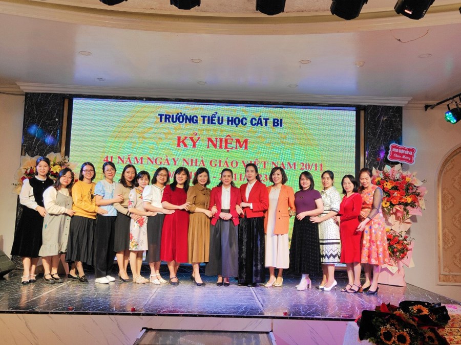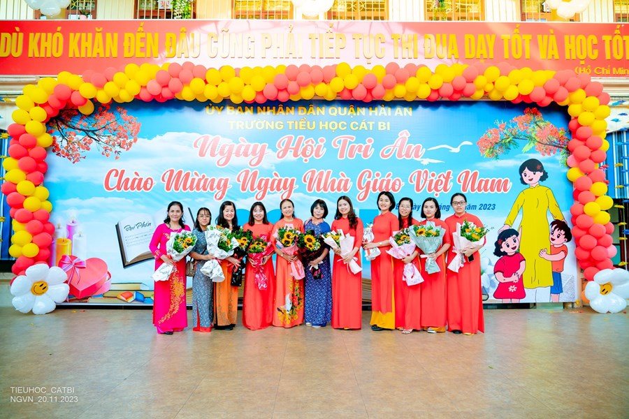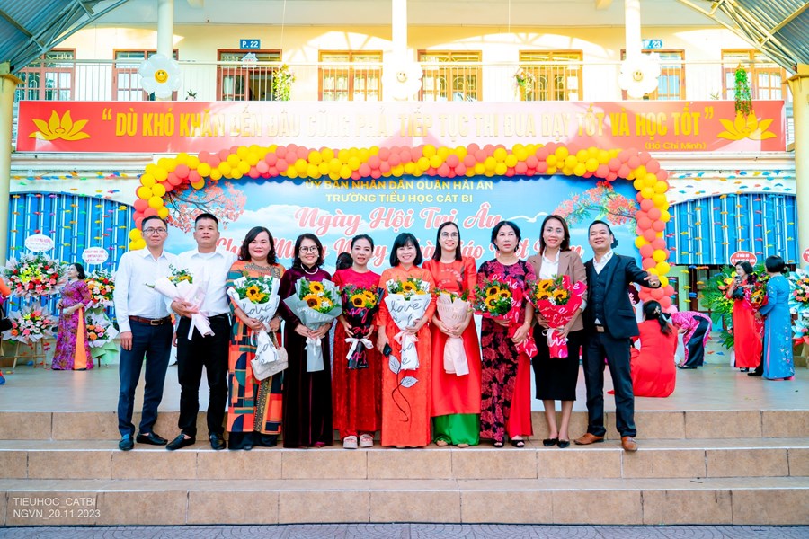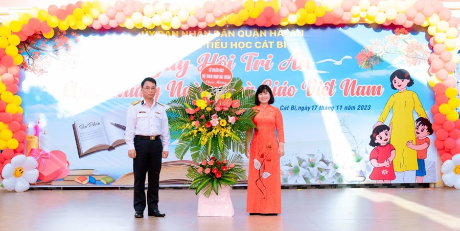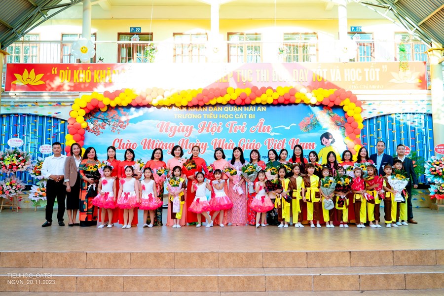 Ngày 20/11 hàng năm đã đi vào lịch sử như một ngày hội lớn của dân tộc. Được Đảng quan tâm, nhân dân thấu hiểu - Vị thế của người thầy được xã hội tôn vinh. Trong ngày vui hôm nay, nhằm ghi nhận, tri ân những đóng góp to lớn của đội ngũ cán bộ, nhà giáo đối với sự nghiệp giáo dục; động viên nhà giáo tích cực học tập, sáng tạo, phát huy nội lực, đẩy mạnh phong trào thi đua lao động giỏi, lao động sáng tạo, xây dựng đội ngũ nhà giáo theo hướng chuẩn về chuyên môn, trong sáng về tư tưởng đạo đức, vững vàng về năng lực và nghiệp vụ sư phạm, thật sự tâm huyết và gắn bó với nghề, lãnh đạo Đảng ủy - HĐND – UBND - UBMTTQ Việt Nam phường Cát Bi, các ban ngành đoàn thể, tổ dân phố, đơn vị kết nghĩa, Hội CMHS nhà trường đã có những lẵng hoa tươi thắm gửi tặng toàn thể CB - GV – NV nhà trường.